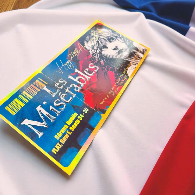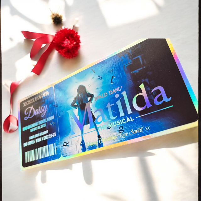 please add all custom details in ā€˜note for merchant’ section at checkout .e.g merry Christmas Caoimhe love from Kate and mark , you are going to see Miss Saigon, bord gais energy theatre, row 3, seat 4 aisle G dec 29th 2025. Please proof read as info will be copied directly and we won’t be held responsible for errors/misspelling
