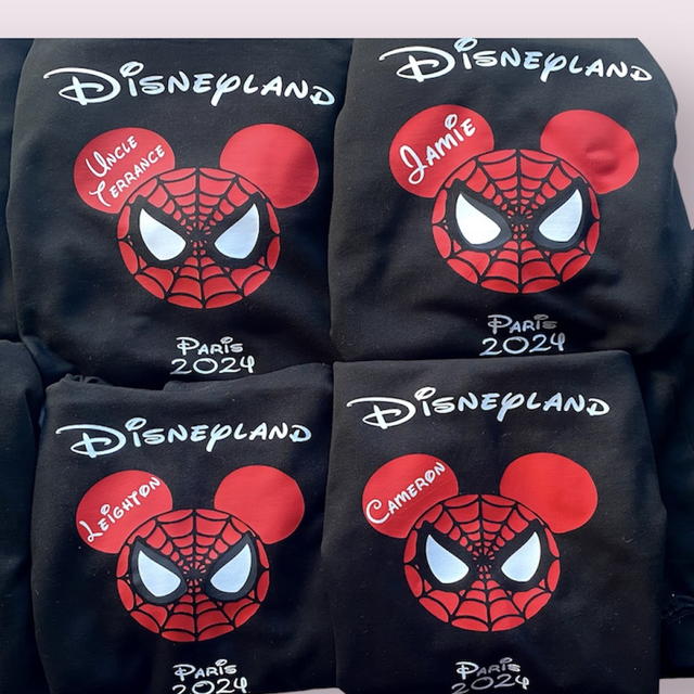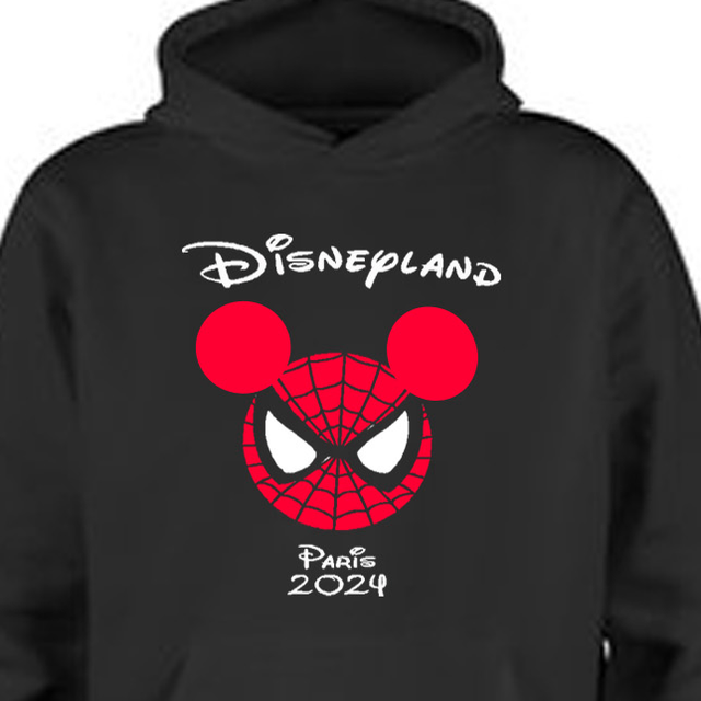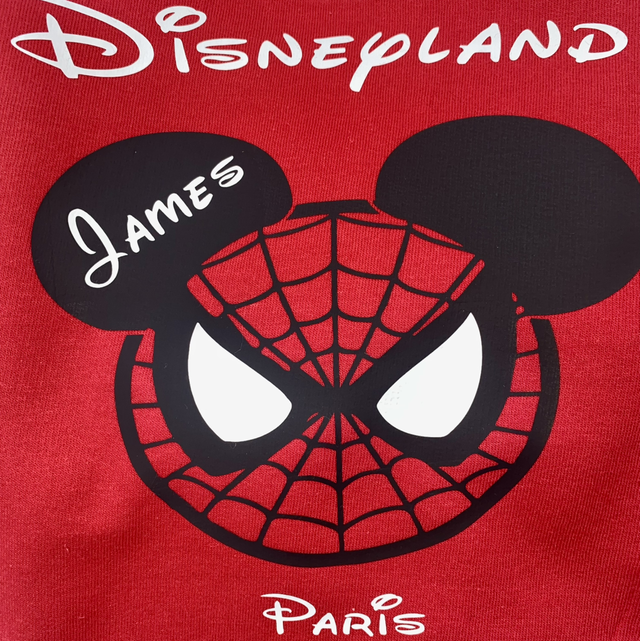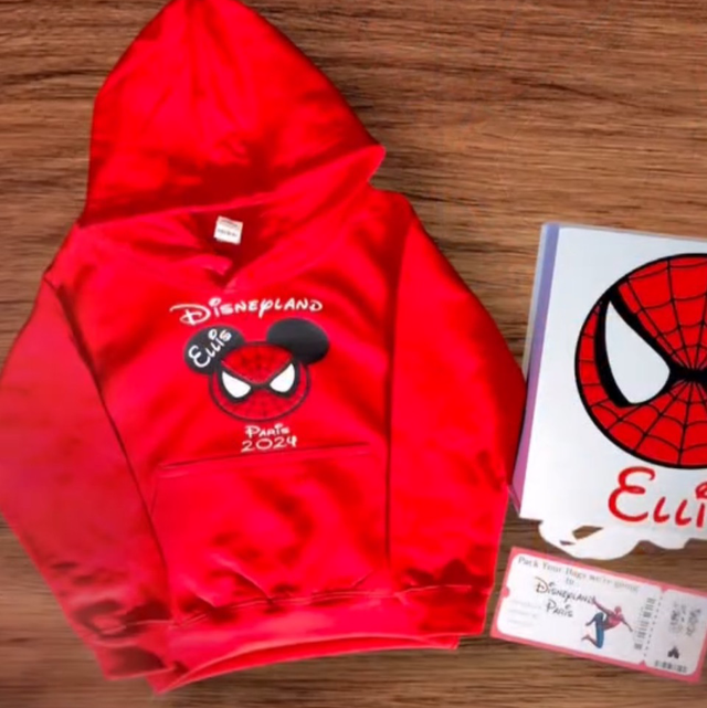 Contents: two hoodies with Disneyland spiderman design and one shared foiled ticket or two individual spiderman tickets , all items are personalised,